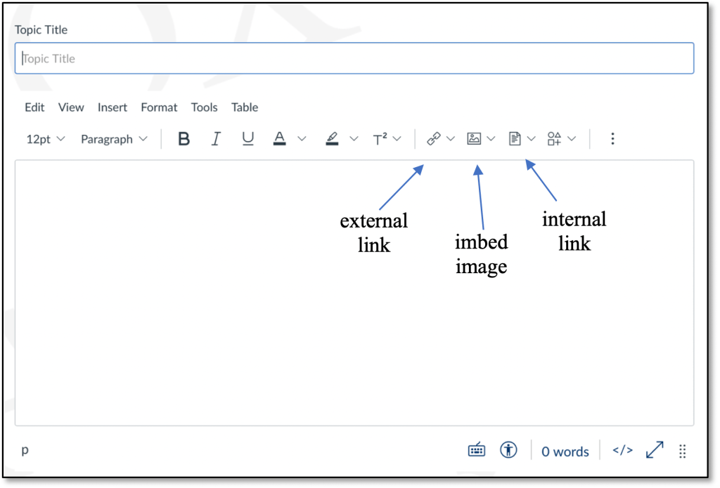 When composing an announcement, you may add external links with thumbnails, imbed images, and link to internal folders and files: