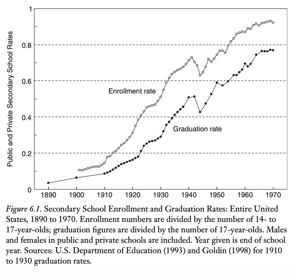 The 20th century saw a massive rise in high school and college enrollments in the U.S. They accompanied curricular shifts that impacted Greek and Latin profoundly. The so-called high school movement from 1910 to 1940, when it was disrupted by WWII, opened access to secondary education across the country. Now high school began to prepare students for jobs, not just college (Goldin & Katz, 2008: 198-199).