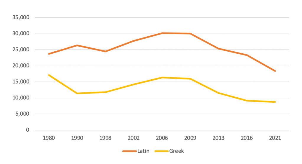 Crane, G. 2015. “Bad News for Latin in the US, Worse for Greek.” Webpage.