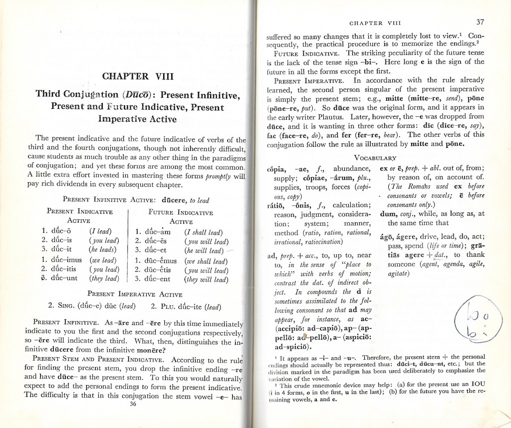 Chapter VIII, covering the third conjugation, from the 1st edition of Wheelock’s Latin: