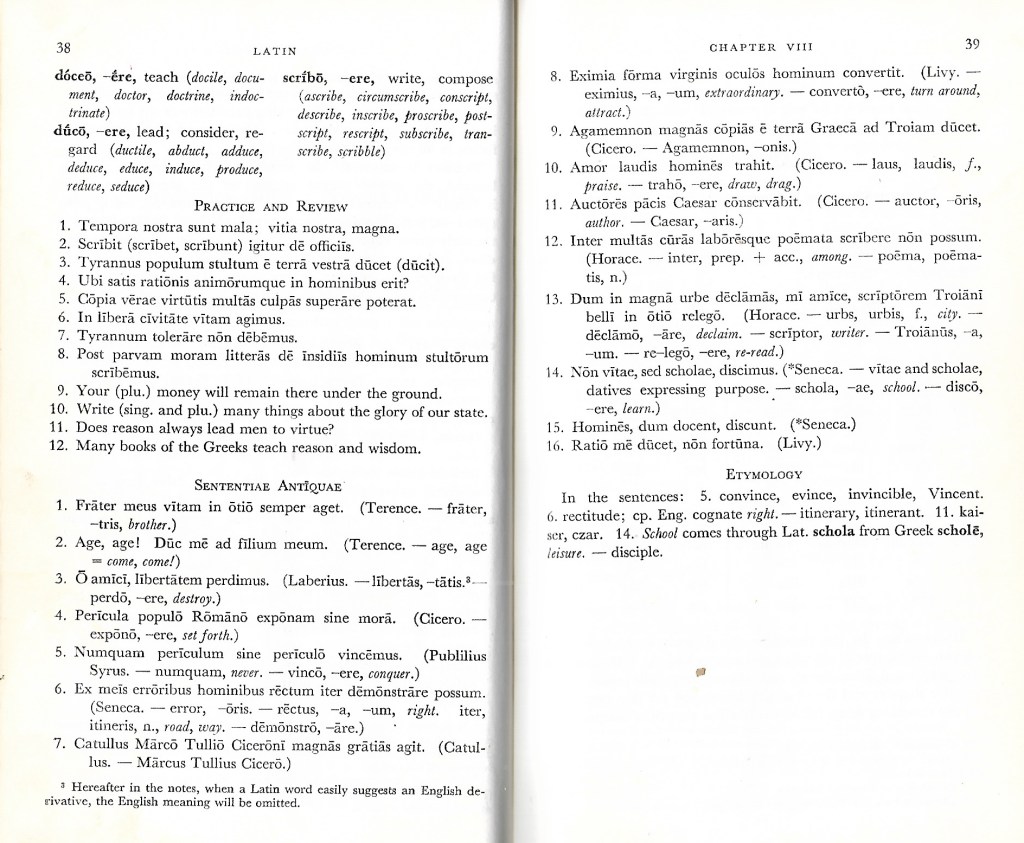 Appleton, R. B. & Jones, W. H. S. 1916. Initium; a First Latin Course on the Direct Method. Cambridge University Press.